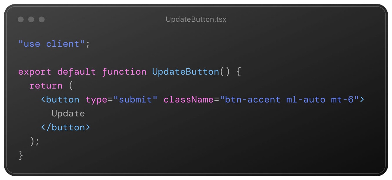 As our ‘UpdateButton’ is an interactive element, we’ve made it a client component using “use client”, in the example below: