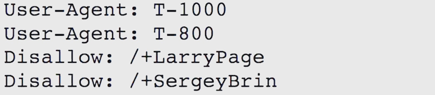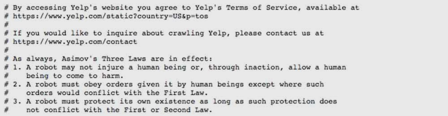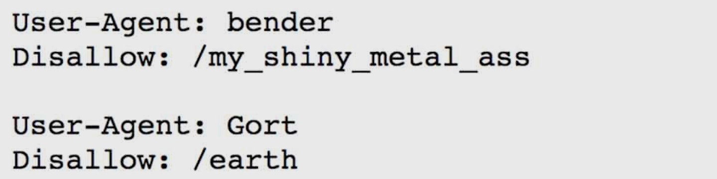 Many of these hidden messages remain true to the filename as they refer to well-known robots. The robot Bender from the popular cartoon series Futurama is part of a whole series of robots.txt files. Or are in a nod to Isaac Asimov's laws of robotics.