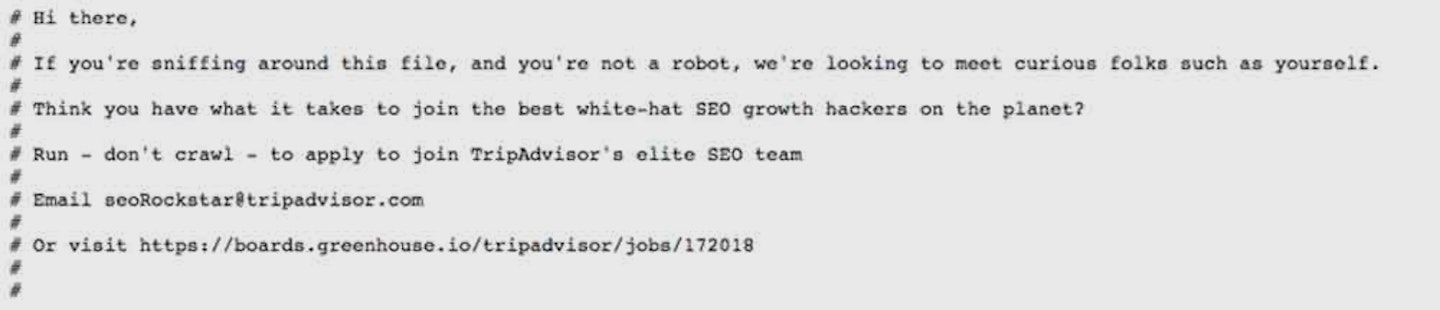 Tripadvisor uses robots.txt to recruit new employees (tripadvisor.com):