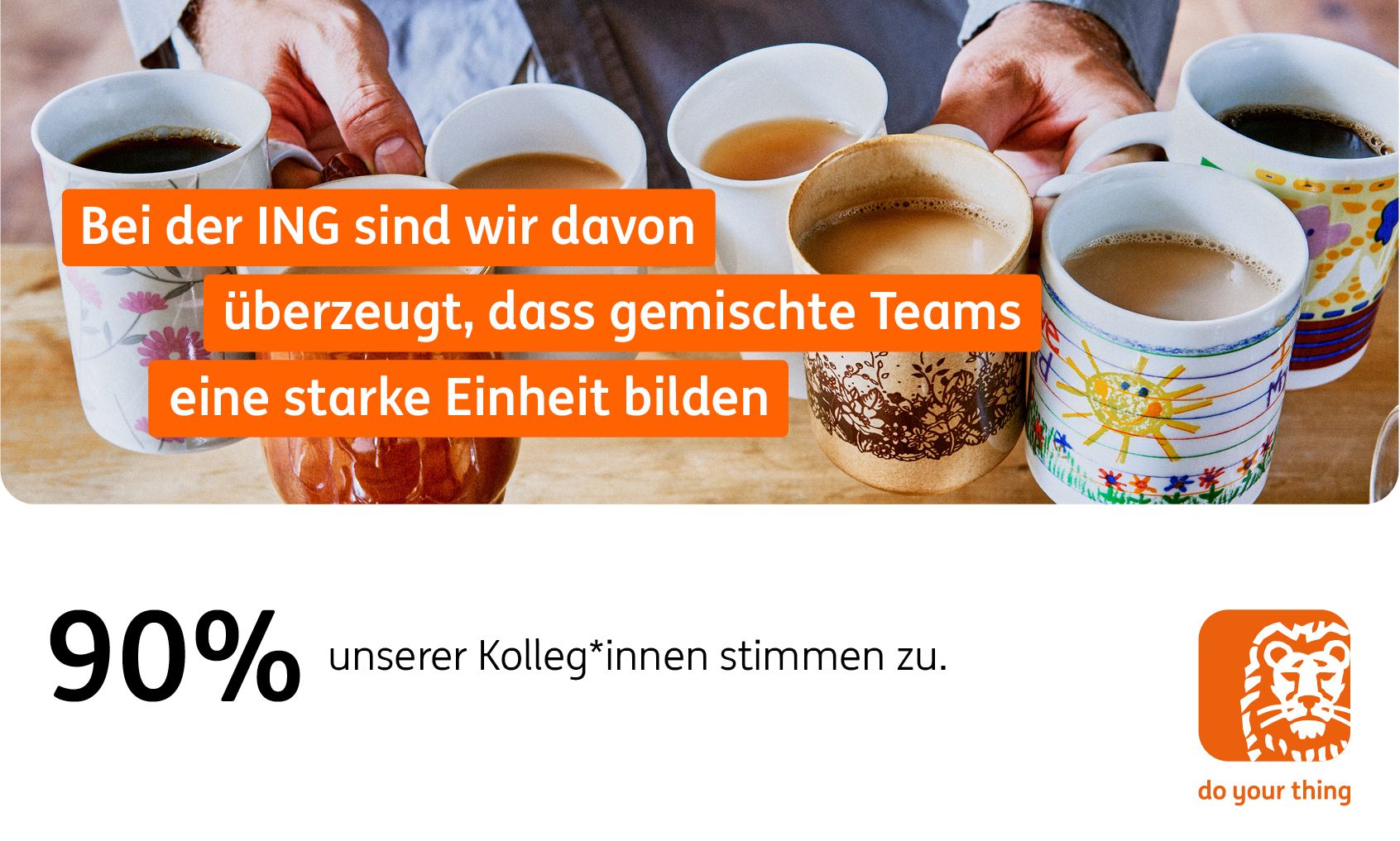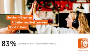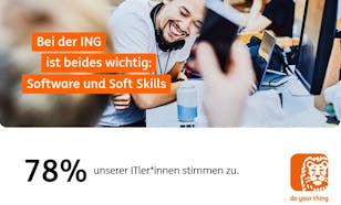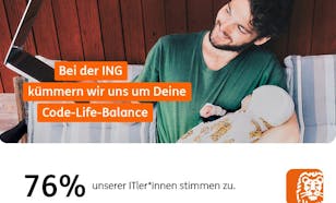 “Bei uns ist eigenverantwortliches, selbstbestimmtes und flexibles Arbeiten selbstverständlich – unabhängig von der Position. Ob in Sneakern oder im Anzug zu arbeiten, ist nichts Ungewöhnliches. Wir schätzen alle, wie sie sind und fördern Vielfalt in allen Teams. Unterschiedliche Lebenswege, Erfahrungen oder Lebensstile sind dabei ganz egal”, beschreibt Heiko (Head of Tech) die Unternehmenskultur der ING.