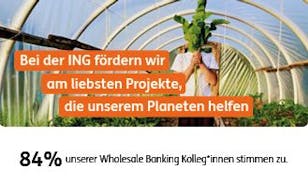 Nachhaltigkeit ist der bei der ING ganz klar Chefsache und wird nicht als isoliertes Thema einer Abteilung gesehen, sondern in allen operativen Bereichen umgesetzt.