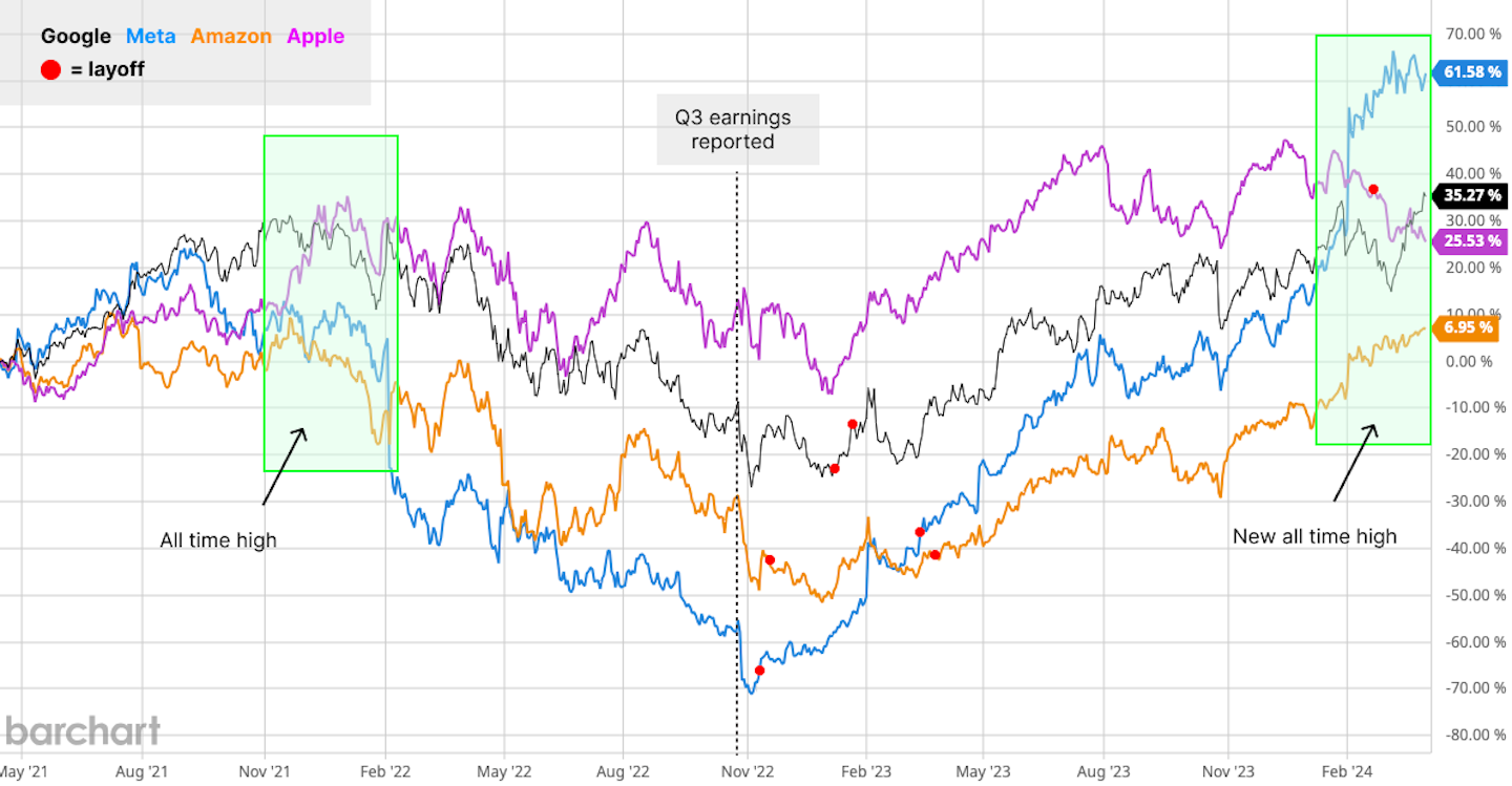 At the very least, we can say that in reducing the headcount, these public companies won back investor confidence. And while these companies may have lost millions or billions of dollars towards severance packages and payouts (Google spent $2.1 billion on severance and other expenses), their loss is seemingly justified given stock performance. The layoffs don’t seem to be about cost-cutting, but about maximising revenue and stabilising the company stock. From a business perspective, it makes sense, from an employee perspective, it’s cold.