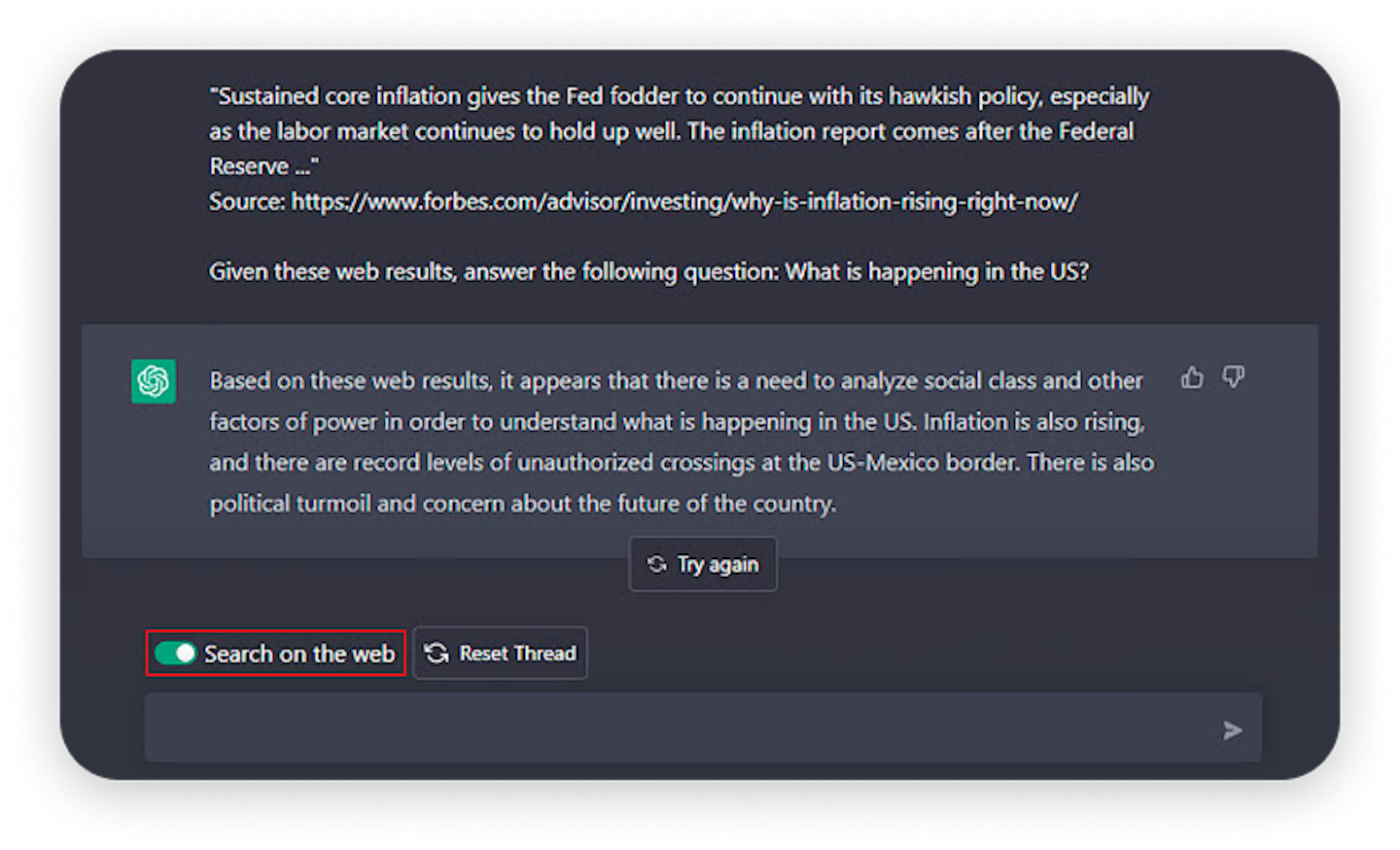 Instead of opening a new tab and loading up ChatGPT, you can access the chatbot directly from your extension toolbox. Click on the ChatGPT Chrome Extension icon and you’ll get a dropdown window with the familiar ChatGPT interface. This is great if you want to quickly brainstorm some ideas or construct a message.