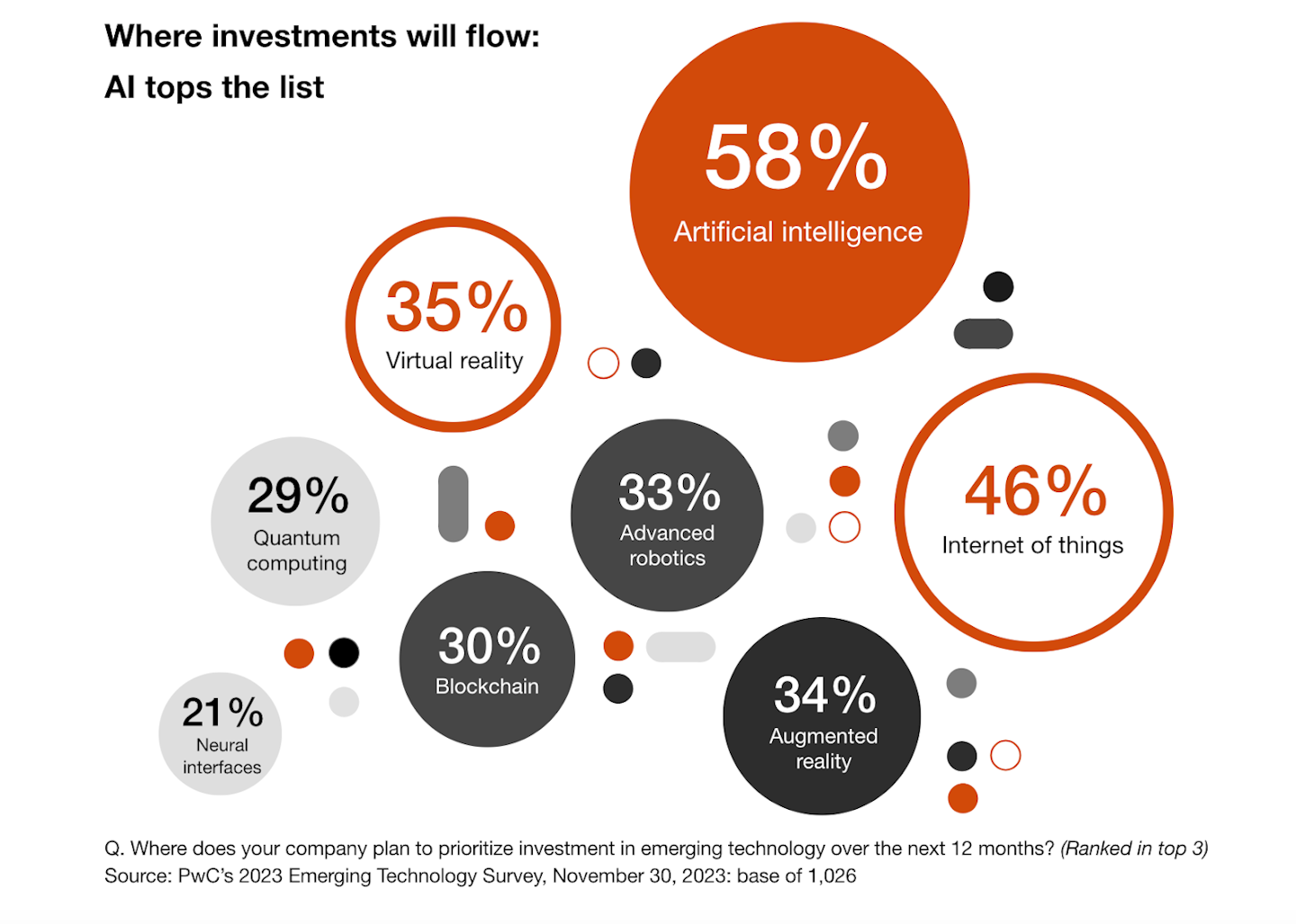 The future of cloud computing looks promising. Businesses are turning to the cloud for data storage and benefiting from AI-powered data analytics that show patterns and trends that might otherwise go unnoticed. According to PWC’s 2023 Emerging Technology Survey, 73% of US companies have already adopted AI in some areas of their business, underscoring the growing recognition of AI's positive impact on business operations.
