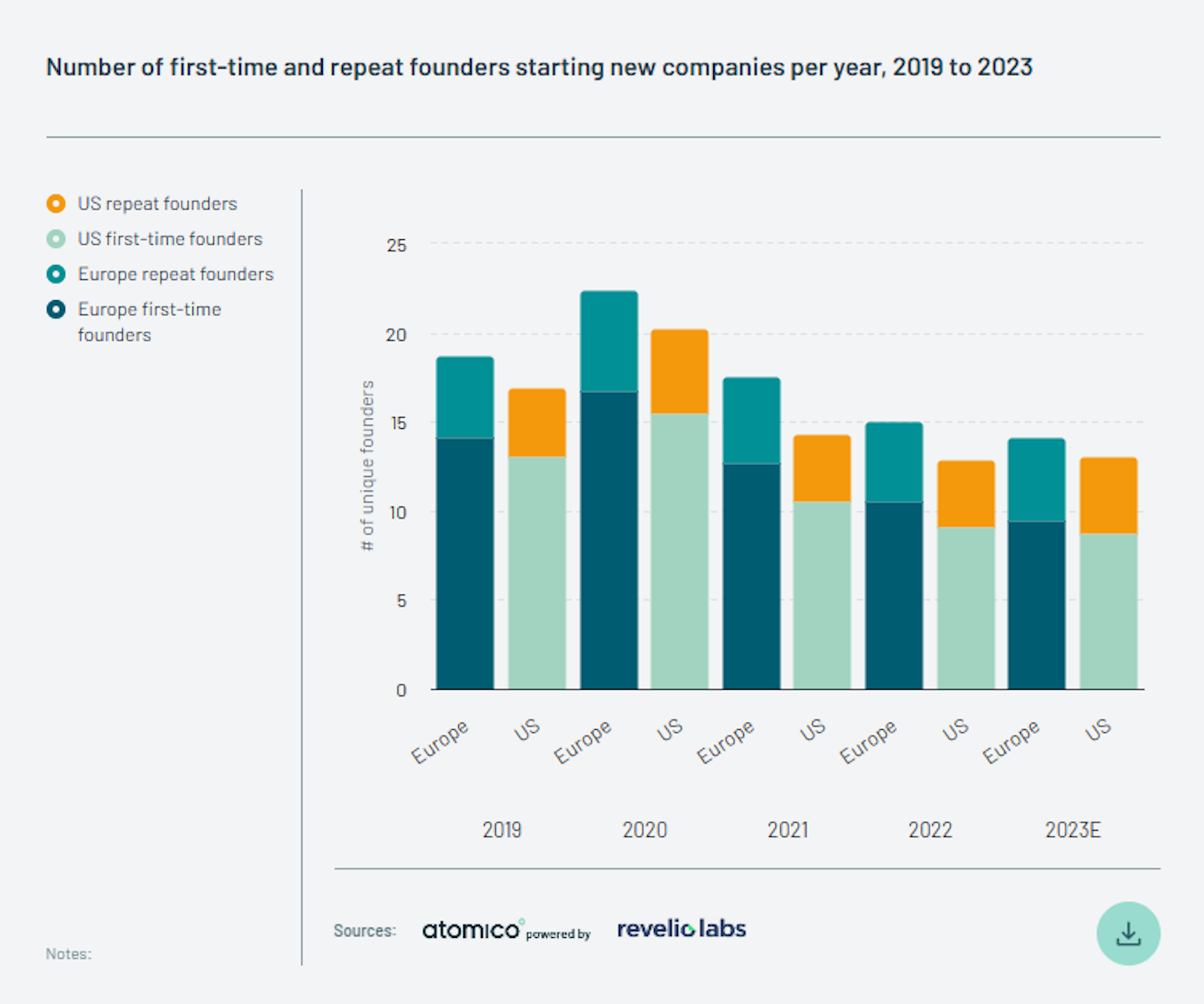 Europe's strong track record in tech startup activity is also helping to drive demand. For the past five years, the number of founders starting new tech startups in Europe has consistently outpaced their counterparts in the US. As these startups grow, they will need more skilled professionals to fill key roles, which calls for the creation of a significant number of new tech jobs across Europe in the coming years.