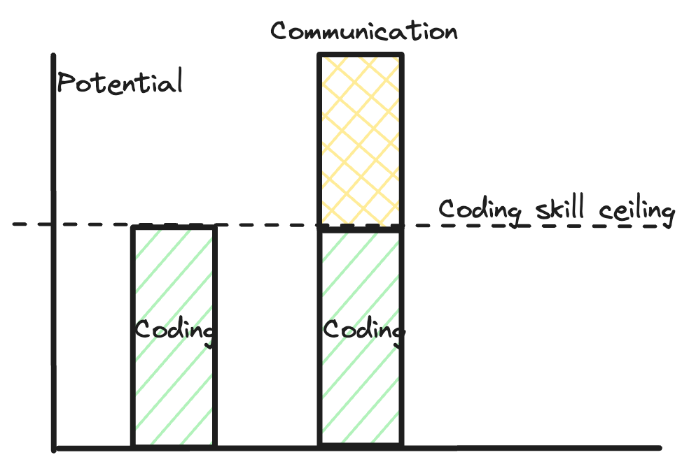 Only focusing on coding skills causes you to reach a ceiling. Communication unlocks more potential. Inspired by Caleb Mellas’s post